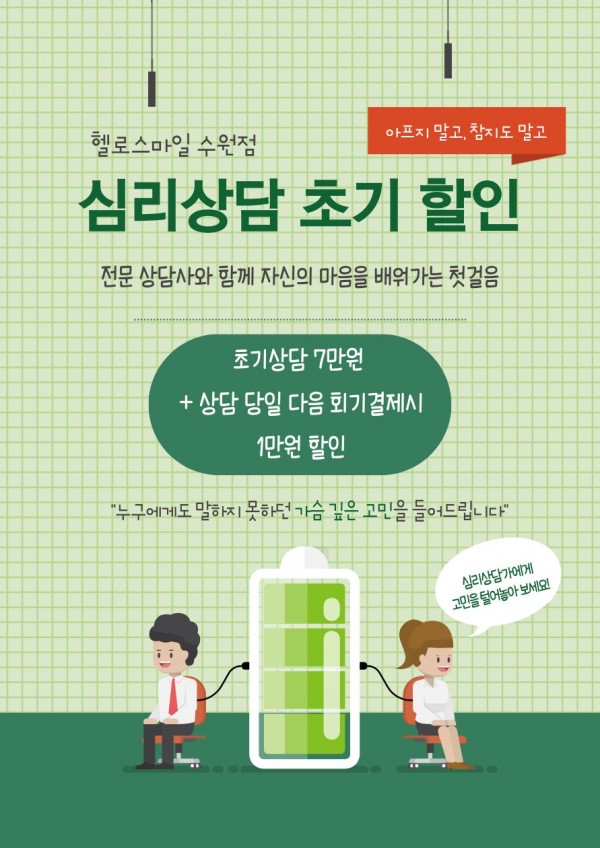 전문 상담사와 함께 마음을 돌아보는 초기 상담 할인 이벤트를 진행합니다.